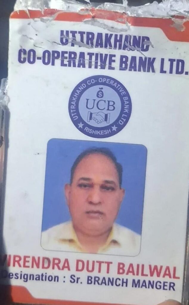 मृतक की पहचान वीरेंद्र दत्त बेलवाल (55), निवासी अमित ग्राम गुमानीवाला, ऋषिकेश के रूप में हुई है। वह उत्तराखंड कॉपरेटिव बैंक में सीनियर ब्रांच मैनेजर के पद पर कार्यरत थे।
