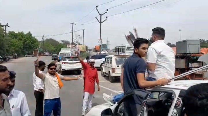 इसी दौरान कुछ लोग हाथों में तलवार और फरसे लेकर लहराते नजर आए। सार्वजनिक स्थान पर इस तरह से हथियारों का प्रदर्शन होने से सुरक्षा व्यवस्था को लेकर चिंता बढ़ गई। खास बात यह रही कि मौके पर पुलिस प्रशासन की मौजूदगी के बावजूद यह प्रदर्शन जारी रहा।
