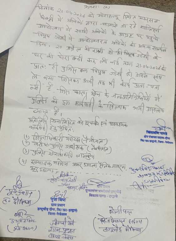 प्रदर्शनकारियों ने चेतावनी दी कि यदि पीयूष जोशी को जल्द बिना शर्त रिहा नहीं किया गया, तो क्षेत्र में व्यापक आंदोलन शुरू किया जाएगा।