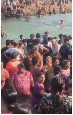 बताया जा रहा है कि घाट पर मौजूद श्रद्धालुओं और महिलाओं ने युवक के व्यवहार का विरोध किया, जिसके बाद स्थिति और बिगड़ गई। इस दौरान मौके पर मौजूद गंगा सभा के गार्ड तुरंत हरकत में आए और युवक को नियंत्रित करने की कोशिश की।