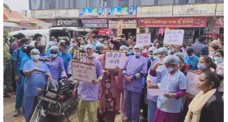 बहादराबाद में अस्पताल कर्मचारियों का प्रदर्शन, भीम आर्मी नेता के होटल के बाहर नारेबाजी