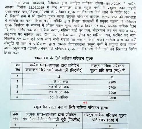 स्थान : हरिद्वारब्यूरो रिपोर्ट स्कूल बस किराए को लेकर चल रही चर्चाओं के बीच परिवहन…