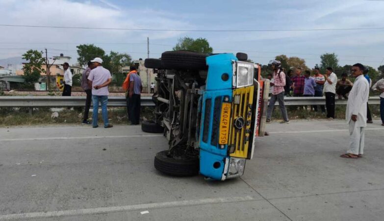 तेज़ रफ्तार एम्बुलेंस पलटी, बड़ा हादसा टला