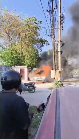 हरिद्वार में डस्टर कार में भीषण आग, बड़ा हादसा टला
